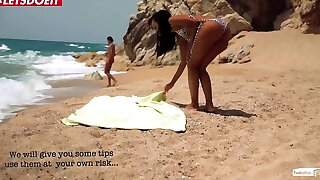 Exhibitionist Wifey 60 - My friend Anjelica gets her shaved fuckbox FINGER FUCKED IN PUBLIC on a NUDE BEACH by a Voyeur!!!