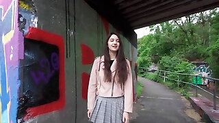 Sweet picked up teen Vanessa Decker gives blowjob to one strange drive before having crazy fuck-fest