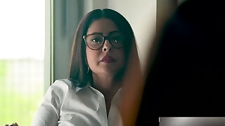 Violent boss fucks his 4 eyed dark-haired waitresses at the table after work