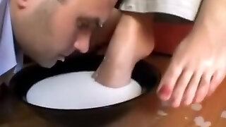 Inexperienced Foot Fetish Girlfriend Sucks and gives a Footjob