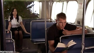 Horny vivid dark-haired couldn't resist and approached a stellar guy in the public transport