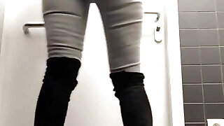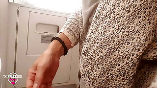 nippleringlover horny milf pissing on public toilet in airplane demonstrating pierced pussy and extreme pierced nipples
