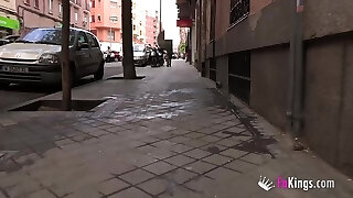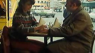 Brunette pippin kisses her Bf and seduces aged and ugly man