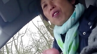 Dick craving mature lady sucks a man's cock in a car