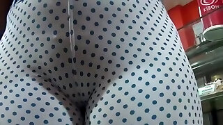 vérification du monticule de chatte rasé de près de la belle-soeur dans un legging super serré. cameltoe sous tous les angles!