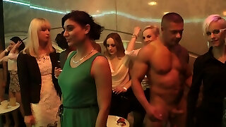 Insatiable chicks take turns at playing with cocks at the soiree