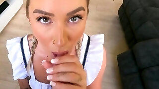 Latina Maid With a Large Booty Notices That Her Boss Is Milking On Her And Hurries To Please His Manmeat