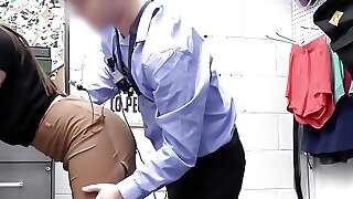Brunette Tattooed Thief Pummeling Two Ample Cocks In The Back Office - Charlie Valentine - Shoplyfter Mylf