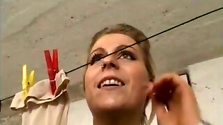 Zesty blondie hussy Sweet Cat mouth plows cock covered with pantyhose